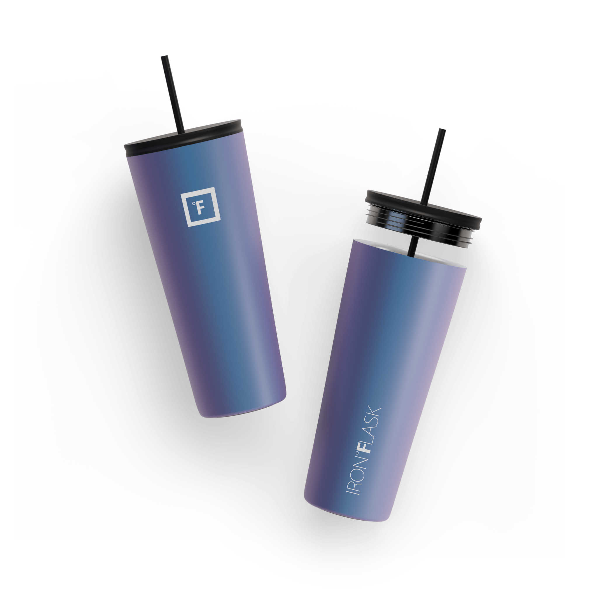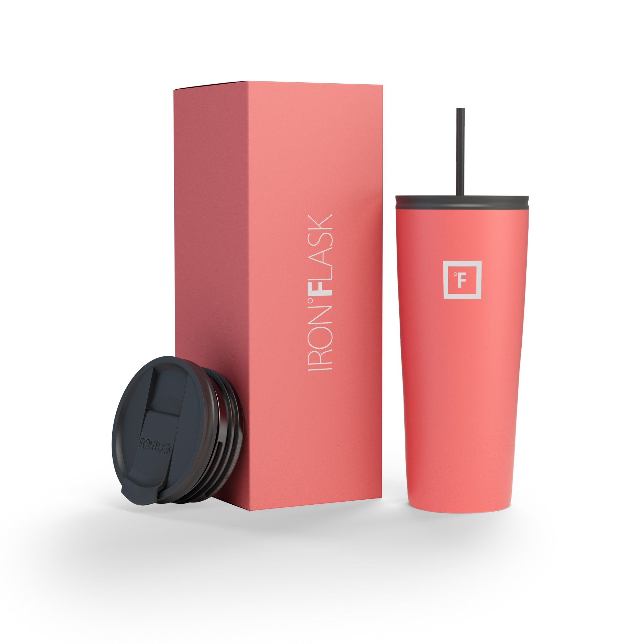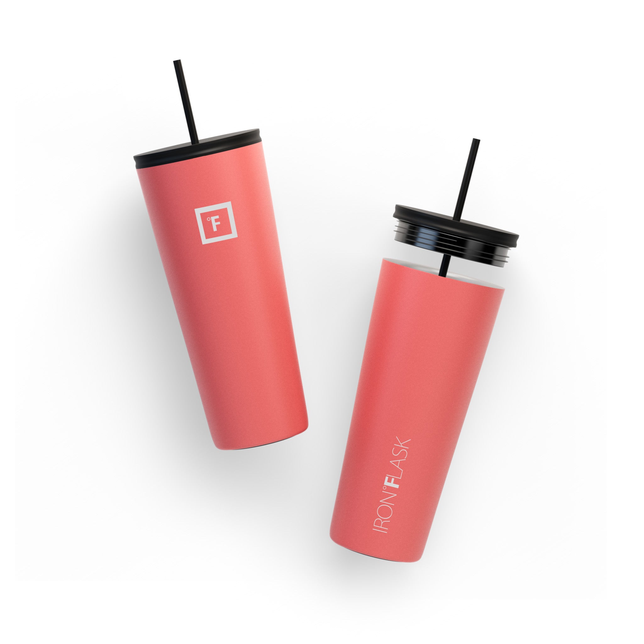 You can be sure that the Iron Flask 24 oz Classic 2.0 Tumbler won’t break a sweat while keeping your drinks cold for 16 hours and hot for 4 hours. thanks to its double-walled vacuum-insulation. This tumbler cup is the perfect size to keep you hydrated while fitting in most cup holders. We’ve outdone the classic tumbler with this 2.0 version by making it leak-proof and adding a rubber bottom that doubles as a non-slip and noise-proof coaster. It includes two different insulated lids; a splash-proof straw lid with two straws. and a 100% leak-proof flip lid. No more unnecessary spills. you’re welcome!