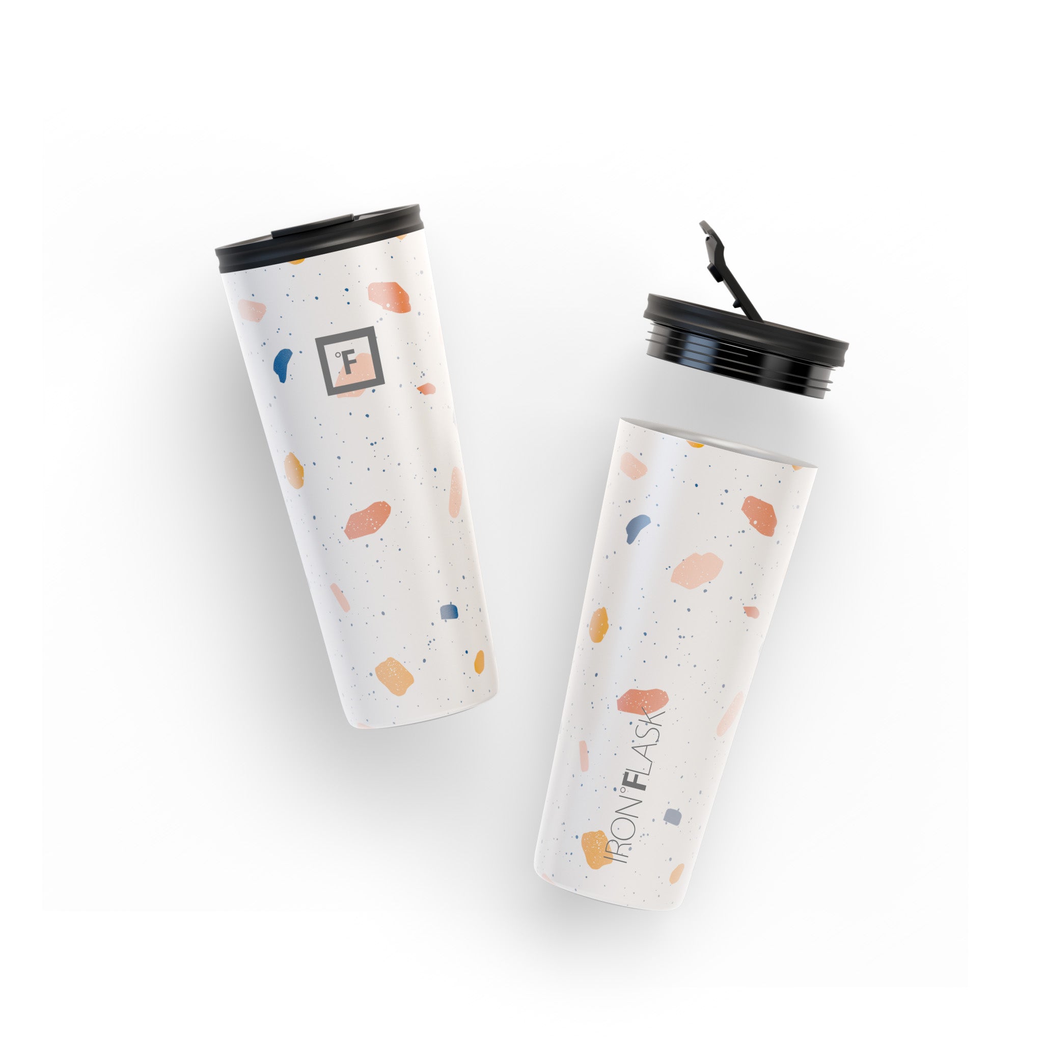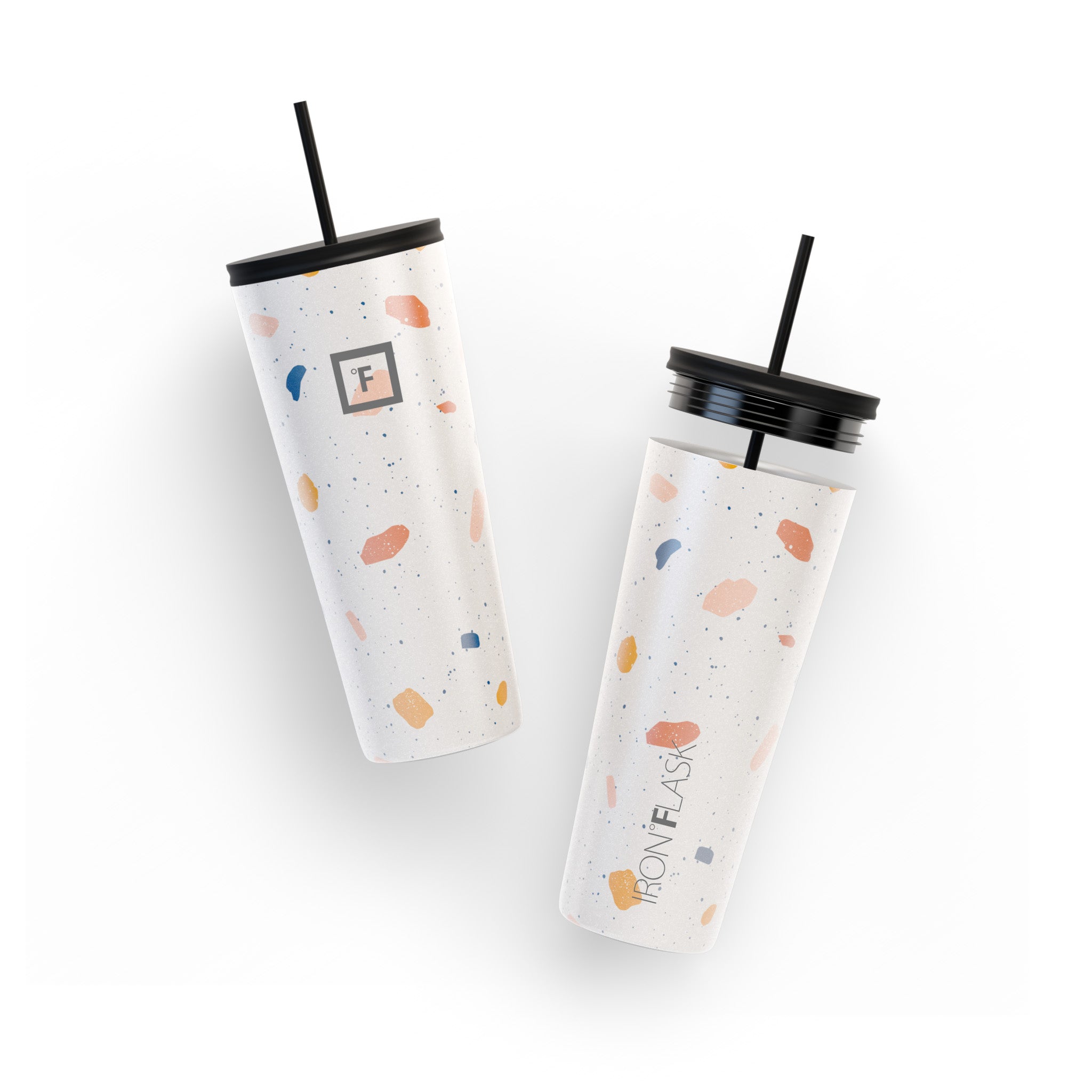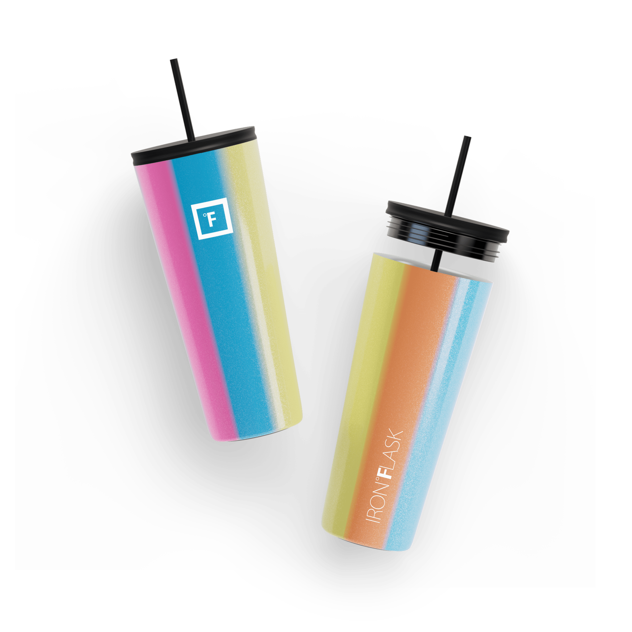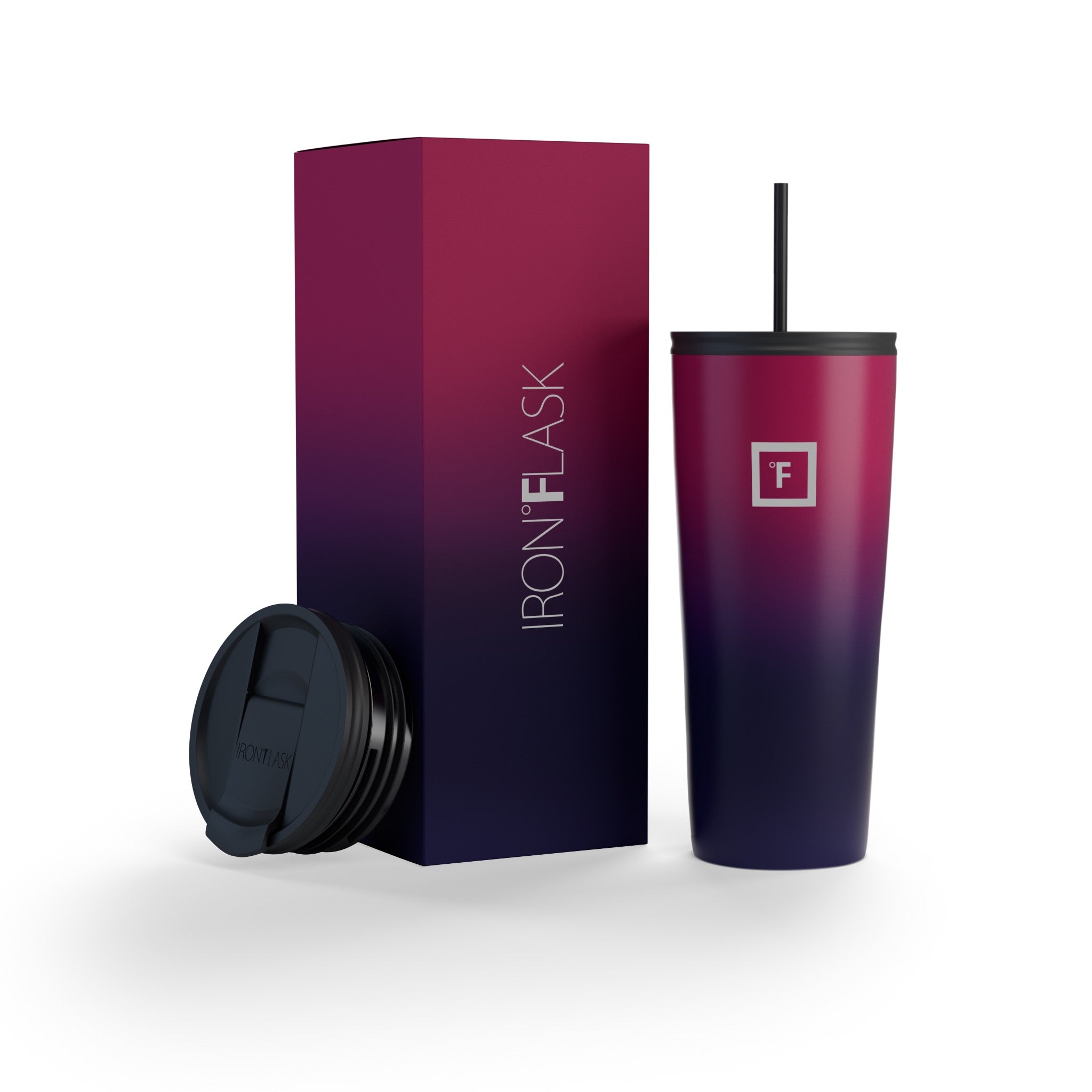 You can be sure that the Iron Flask 24 oz Classic 2.0 Tumbler won’t break a sweat while keeping your drinks cold for 16 hours and hot for 4 hours. thanks to its double-walled vacuum-insulation. This tumbler cup is the perfect size to keep you hydrated while fitting in most cup holders. We’ve outdone the classic tumbler with this 2.0 version by making it leak-proof and adding a rubber bottom that doubles as a non-slip and noise-proof coaster. It includes two different insulated lids; a splash-proof straw lid with two straws. and a 100% leak-proof flip lid. No more unnecessary spills. you’re welcome!